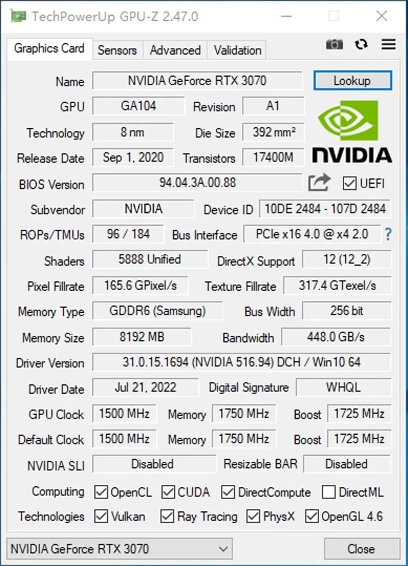 July 21, 2024USED RTX 3070 8GB NVIDIA GPU Placa De Video GDDR6 256bit