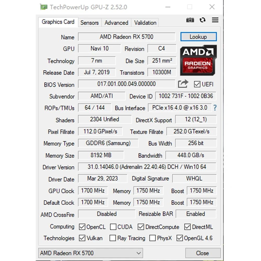 July 21, 2024USED RX 5700 8GB GPU GDDR6 256-bit 7nm